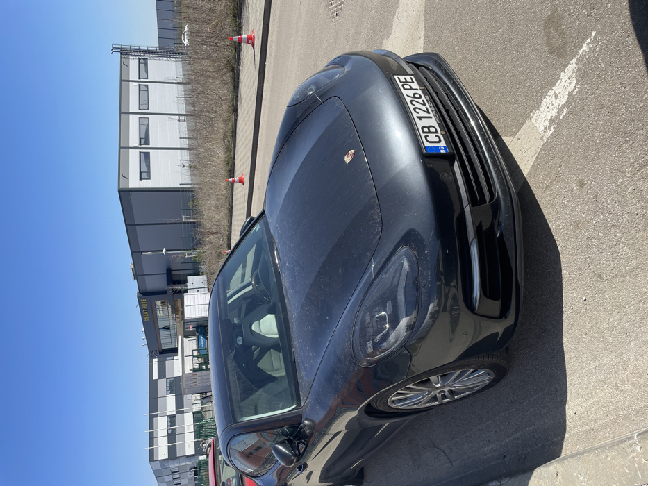 A dark grey Porsche Panamera (second generation, 971 series) is depicted parked outdoors on an asphalt surface in Bozhurishte, Bulgaria