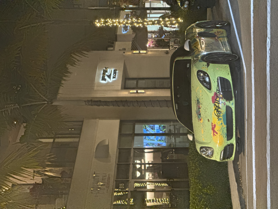 - "The image displays a custom-painted lime green Porsche Boxster convertible parked at night on a paved surface along a commercial street" by FM-62dDj2, licensed under CC BY 4.0
