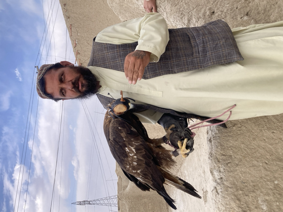 - "An outdoor scene in Qilla Saifullah, Pakistan, depicts a male individual holding a raptor" by FM-7ELnX2, licensed under CC BY 4.0