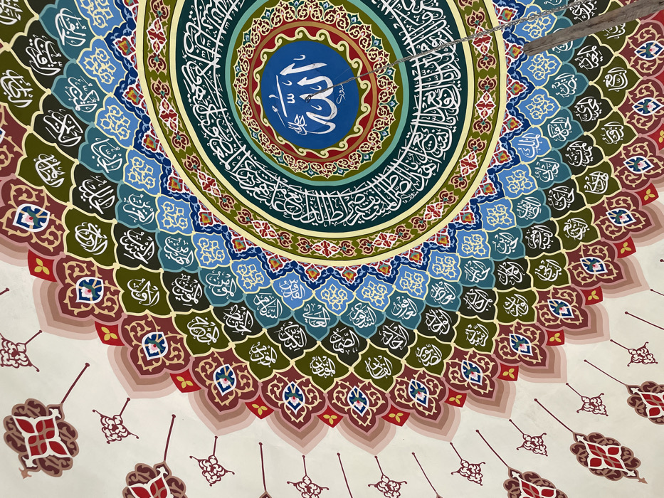 - "The image presents a detailed, upward-angled view of an intricately painted ceiling or dome interior, located in Kumbang, Indonesia" by FM-56aBo1, licensed under CC BY 4.0