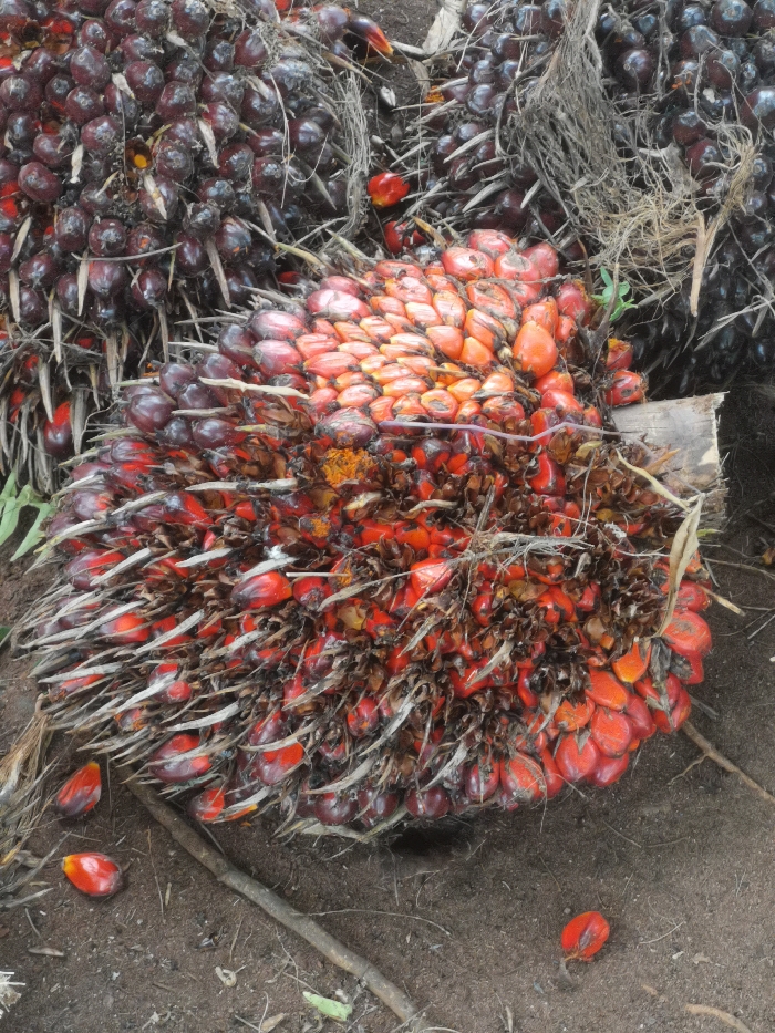 - "The scene depicts a collection of harvested palm oil fruit bunches laid on dark earth in Otolokpo, Nigeria" by FM-t8Vzk1, licensed under CC BY 4.0