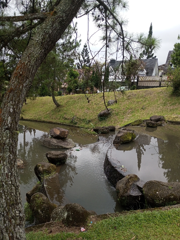 - "A serene outdoor scene features a pond dotted with mossy rocks" by FM-XxpLF3, licensed under CC BY 4.0