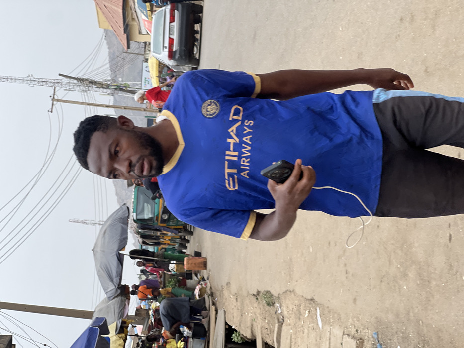 - "This image captures a male individual, estimated to be in his late 20s to early 30s, walking on an unpaved street within an active market area in Gwong, Nigeria, under an overcast sky" by FM-BltKA2, licensed under CC BY 4.0
