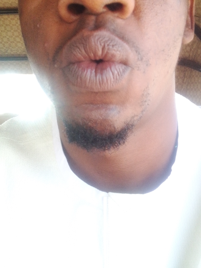 This close-up image, reportedly captured in the city of Jos, Nigeria, focuses on the lower facial region of an individual, likely male, from the nose to the upper chest