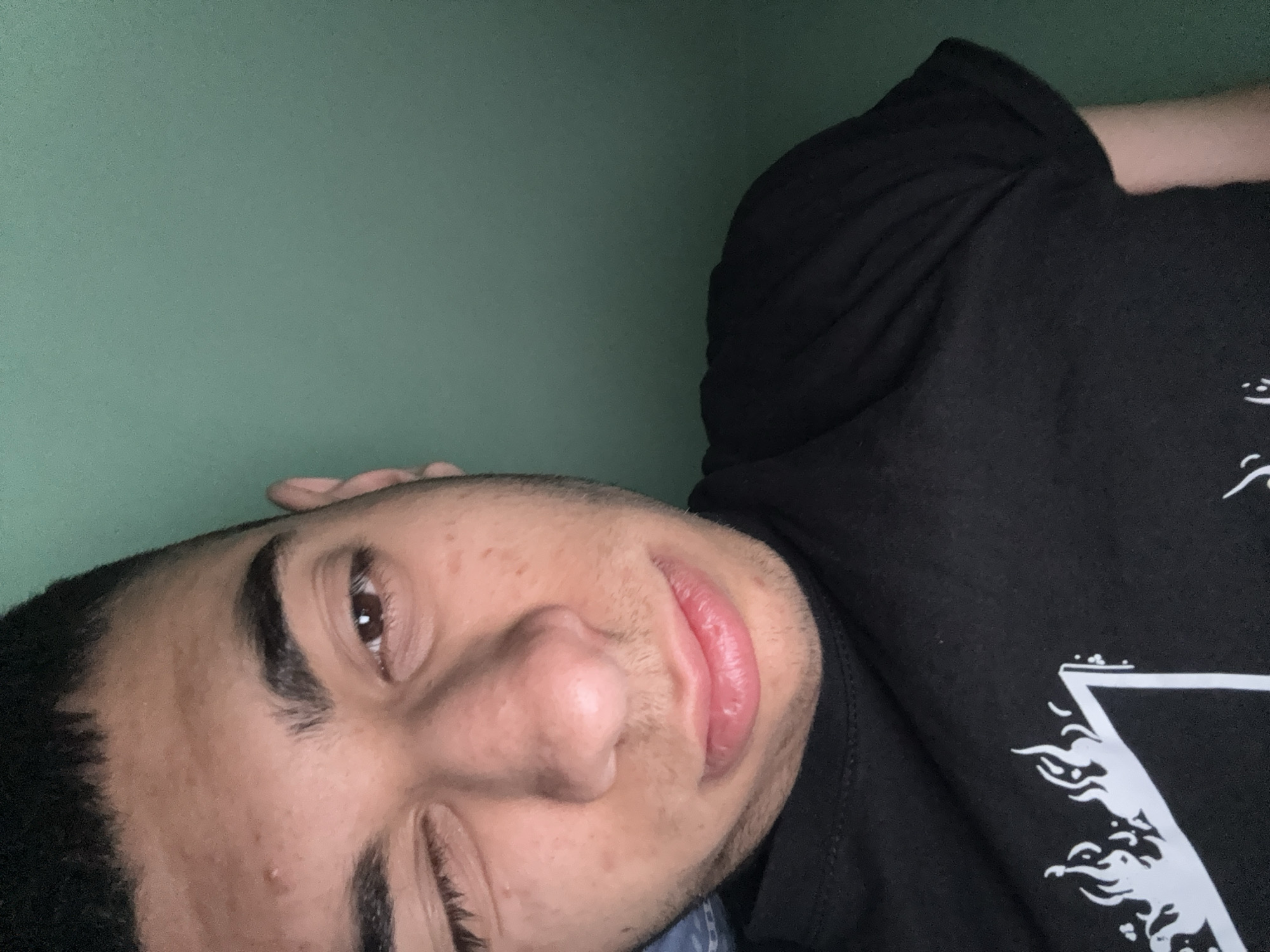 A man is lying down. He is wearing a black t-shirt with a white design. The background is a plain, light green wall. There is no visible indication of Sofia, Bulgaria.