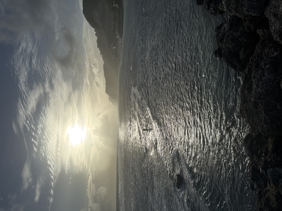 - "A wide-angle image depicts a coastal scene in Ungasan, Indonesia, under a hazy sky with a prominent sunburst" by FM-3l5D82, licensed under CC BY 4.0