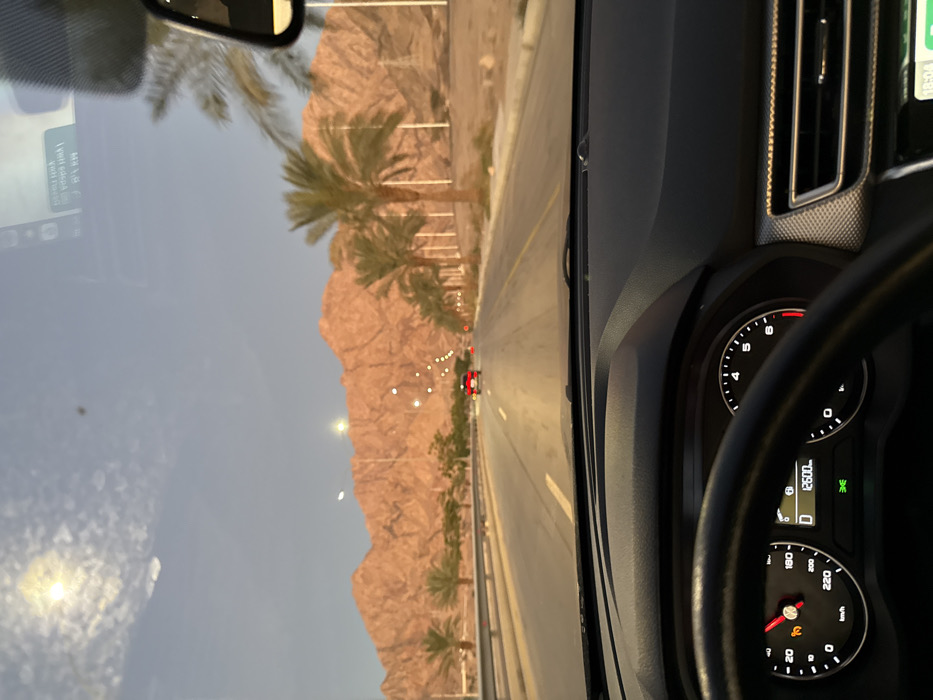 - "The image depicts a first-person view from inside a stationary or slow-moving vehicle on a multi-lane road in Aqaba, Jordan, during dusk or late afternoon" by FM-E8HK12, licensed under CC BY 4.0