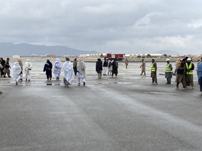 - "The image displays an active airfield tarmac in Unknown, Afghanistan, under an overcast sky with a visibly wet surface" by FM-B5wmg2, licensed under CC BY 4.0