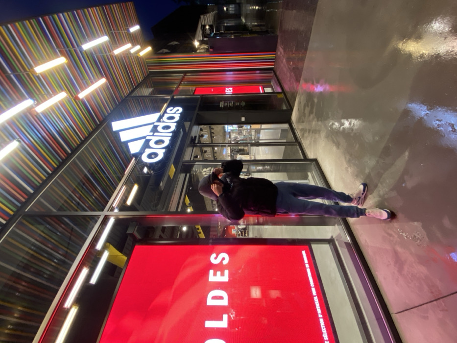 - "A person wearing a dark jacket and jeans stands in front of an Adidas store" by FM-WEULP2, licensed under CC BY 4.0