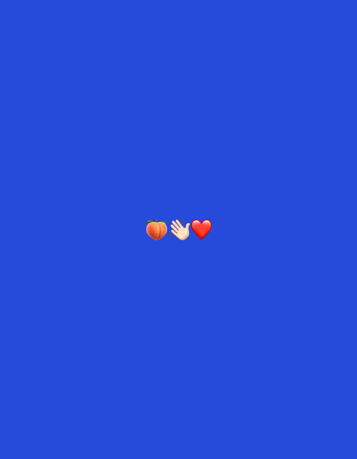 This digital image, encountered within Ouislane, Morocco, presents a solid royal blue background. Horizontally centered and situated in the lower middle portion of the frame are three distinct emojis. From left to right, these are a peach, a pale-skinned waving hand, and a vibrant red heart. No people, physical objects, actions, or direct interactions are visible within the image content, which consists solely of these digital symbols on a monochromatic field.