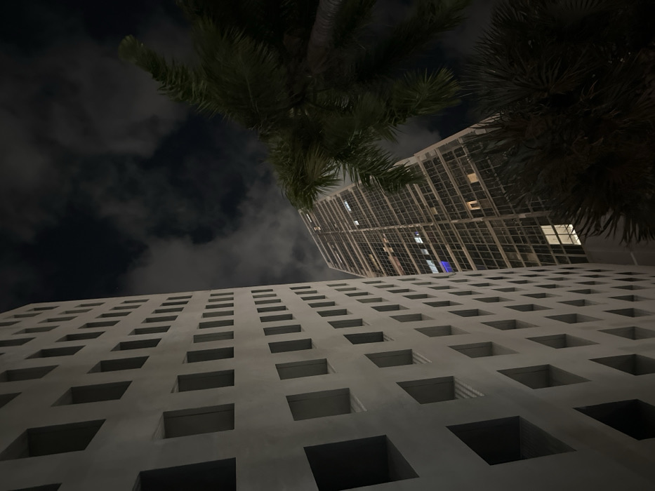 - "The image captures an urban night scene in Downtown Miami, United States, from a low-angle perspective looking skyward" by FM-IS41v2, licensed under CC BY 4.0