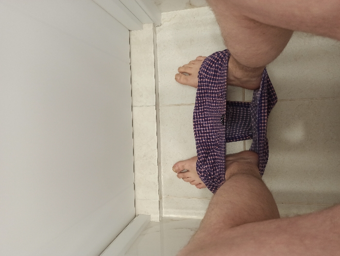 - "A first-person perspective shows a person's bare legs and feet in a bathroom" by FM-5QedD3, licensed under CC BY 4.0