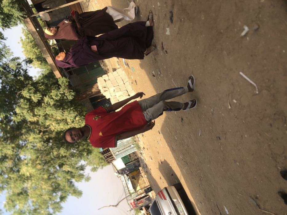 The image depicts an outdoor scene in the city of Dabawa, Nigeria, under bright daylight