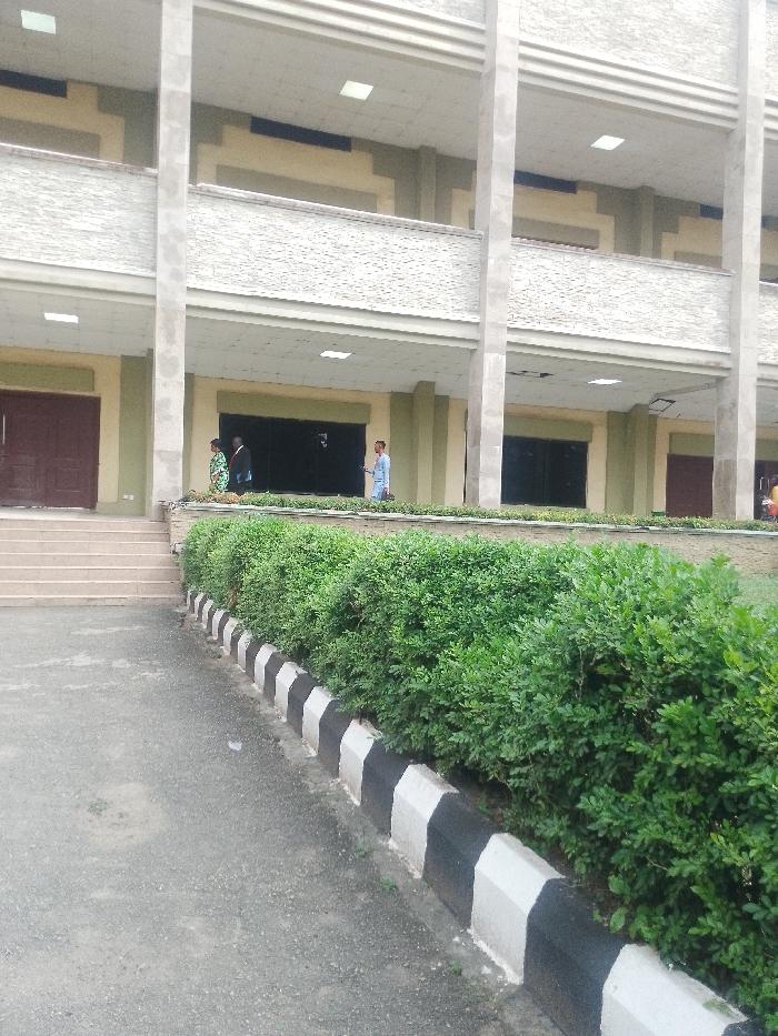 This image captures an exterior view of a multi-story building located in Ota, Nigeria