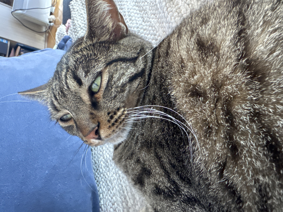 - "The image displays a domestic short-haired tabby cat, characterized by a coat of brown, grey, and black stripes" by FM-JSAz93, licensed under CC BY 4.0