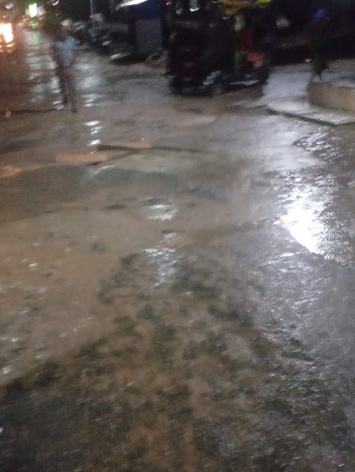 - "The image depicts a low-light, blurry street scene in Aba, Nigeria, characterized by a wet, uneven ground surface with standing water and reflections from distant light sources" by FM-kOvDM2, licensed under CC BY 4.0