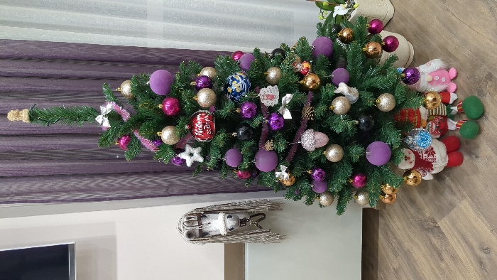 - "An indoor scene, location Unknown, Unknown, displays a decorated artificial Christmas tree positioned on a light brown wood-effect laminate floor" by FM-TNQlh2, licensed under CC BY 4.0