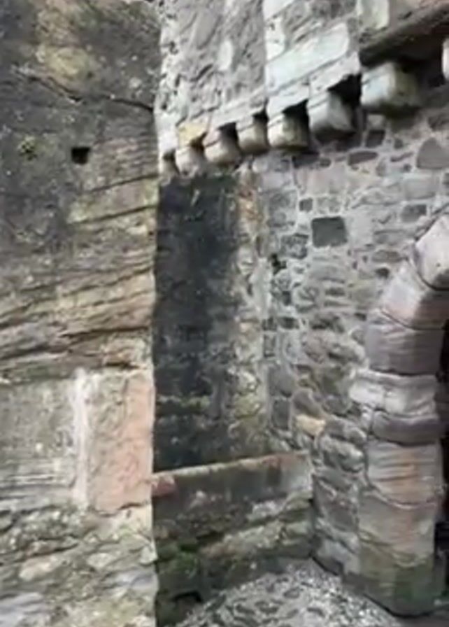 stone structure, possibly part of a castle or old building, featuring an arched entrance