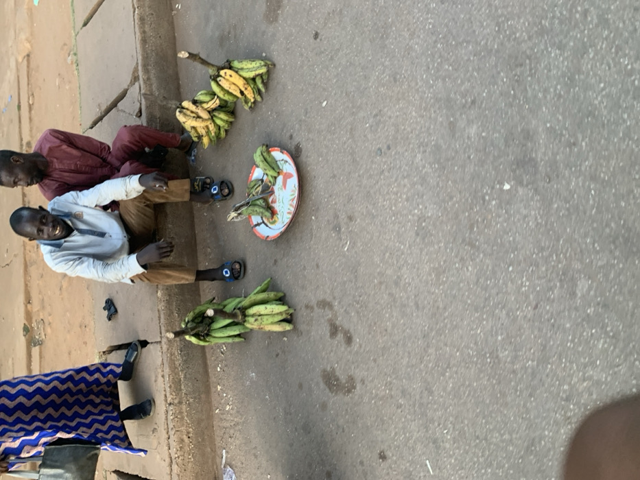 - "Two men sit beside bunches of bananas and plantains at a roadside stand" by FM-1BJ1k2, licensed under CC BY 4.0