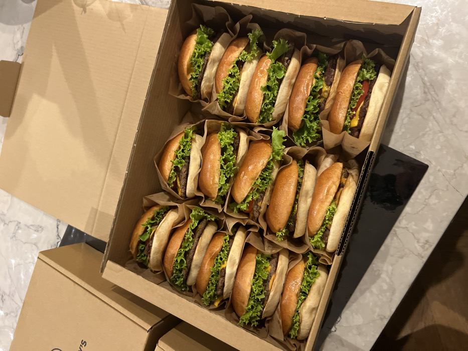 - "A cardboard box is filled with small hamburgers, each wrapped in tan paper" by FM-RsxEw2, licensed under CC BY 4.0