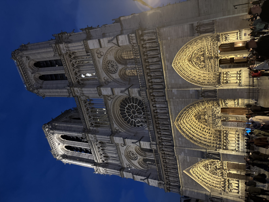 - "The image displays the exterior facade of the Notre-Dame Cathedral on the Île de la Cité in Paris, France, captured at night or during deep twilight" by FM-rcZfH3, licensed under CC BY 4.0