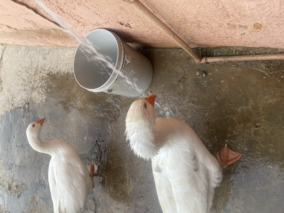 - "The scene depicts an outdoor area in Hotoro South, Nigeria, featuring two white geese, a water source, and a bucket" by FM-rZumQ2, licensed under CC BY 4.0