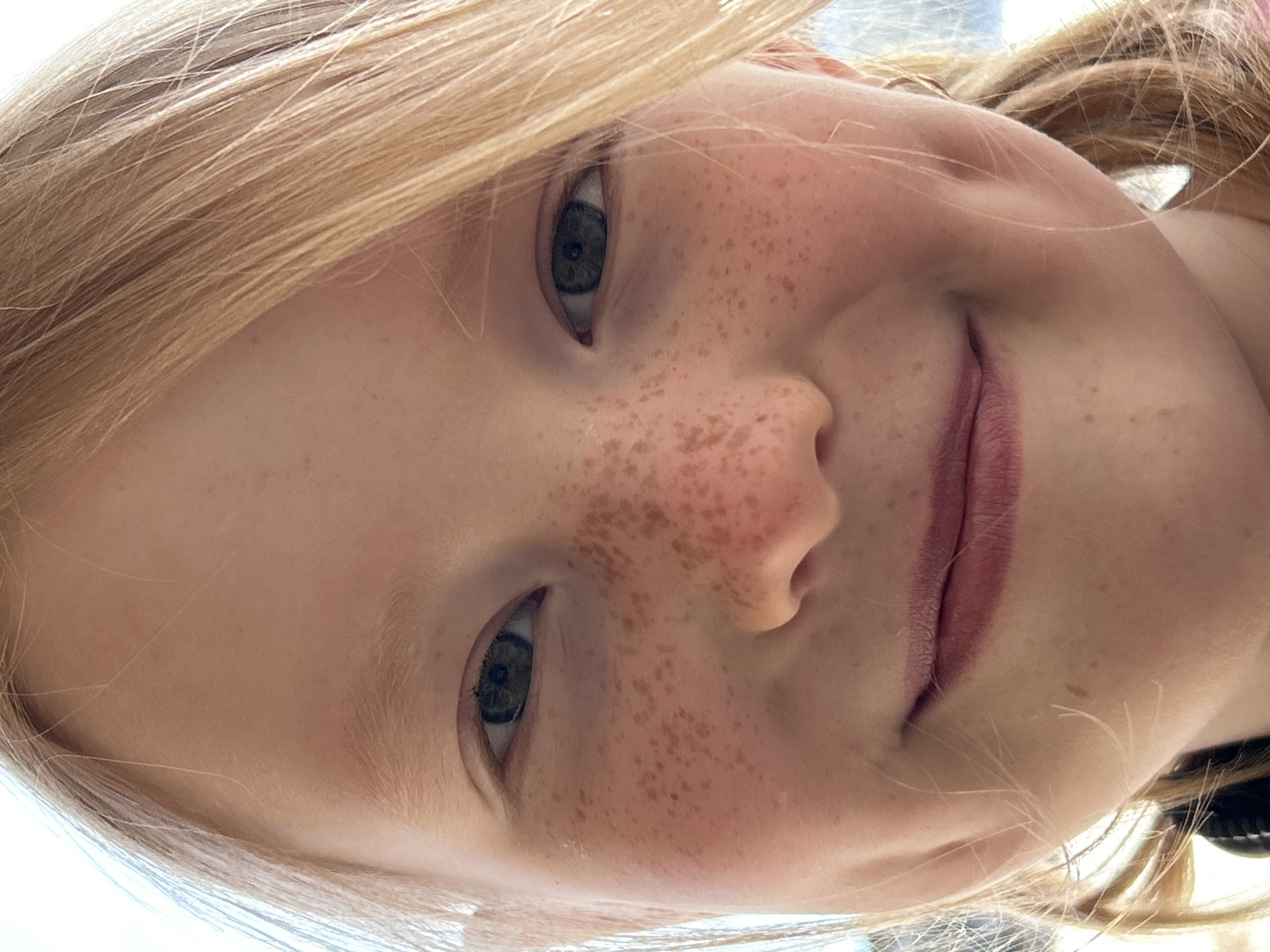 - "A close-up, slightly tilted, head-and-shoulders shot shows a fair-skinned child with blonde hair, freckles, and blue-grey eyes" by FM-ZgnHF3, licensed under CC BY 4.0