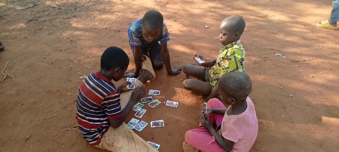 - "Four young children are positioned outdoors on reddish-brown dirt ground in Ngalula, Democratic Republic of the Congo, engaged in playing a card game" by FM-Di9s03, licensed under CC BY 4.0