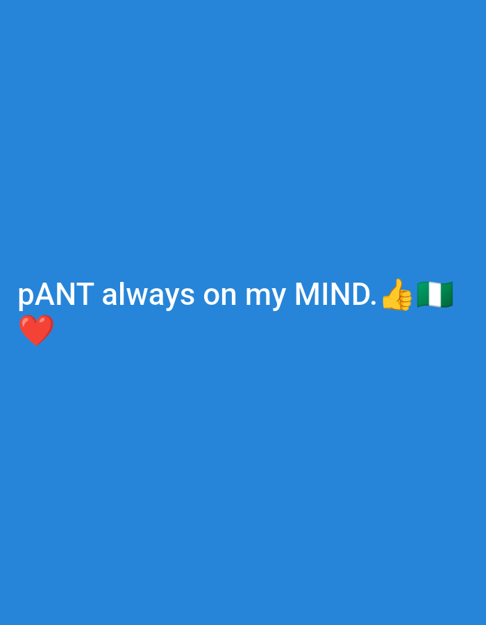 The image features the text "pANT always on my MIND" in white, placed against a solid blue background. A red heart emoji is located to the left of the text, and a thumbs-up emoji, followed by the Nigerian flag emoji, is positioned to the right. The text and emojis are centered horizontally and vertically within the frame.