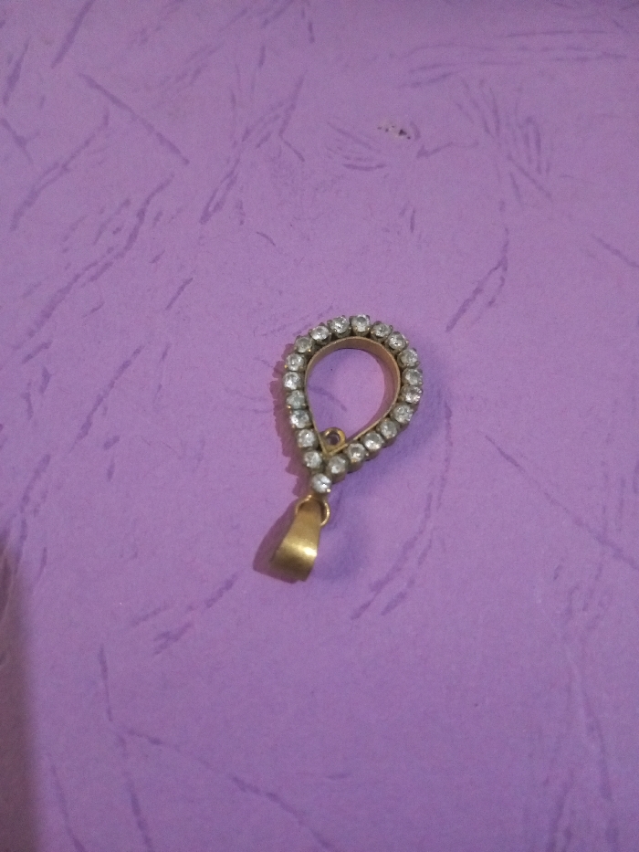 - "A single gold-colored pendant, shaped like an inverted teardrop or pear, is centrally displayed on a textured, light purple surface" by FM-VgsoJ2, licensed under CC BY 4.0