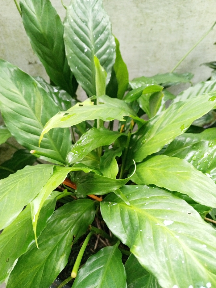 - "The image displays a dense cluster of vibrant green plant foliage, consistent with a Peace Lily (Spathiphyllum) variety, located in Phoukhoun, Laos" by FM-KJWik2, licensed under CC BY 4.0
