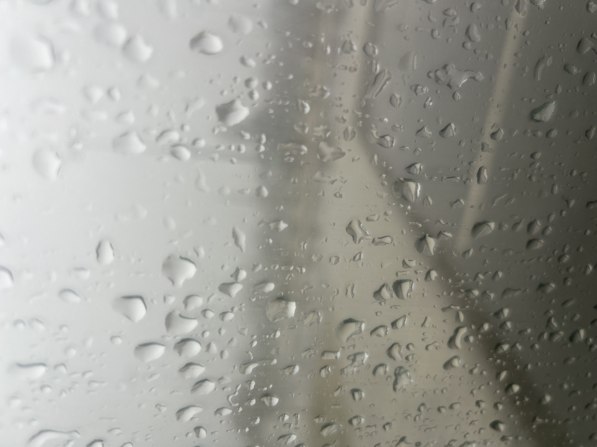 - "The image displays a close-up, forensic view through a transparent surface, likely a window, thoroughly covered with numerous water droplets of various sizes and shapes" by FM-mpUWQ2, licensed under CC BY 4.0