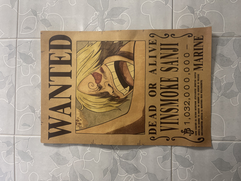 The image is a "One Piece" wanted poster featuring the character Vinsmoke Sanji
