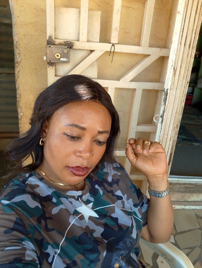 An image captured in Sabon Tasha, Nigeria, depicts an adult female positioned off-center to the left, looking downwards and to her right