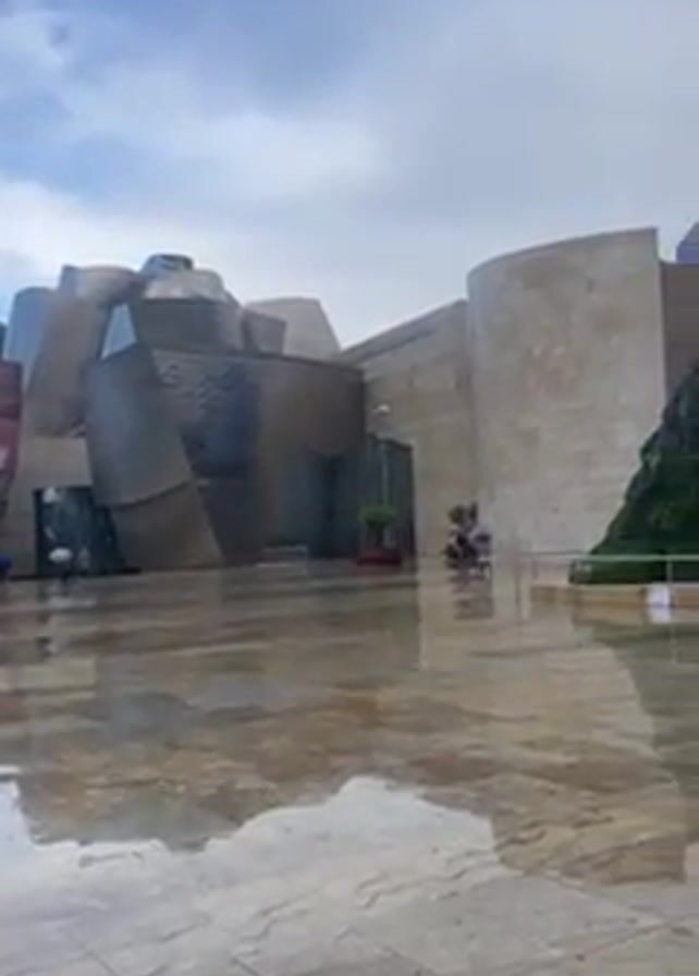 exterior of the Guggenheim Museum in Bilbao, Spain, on a wet day