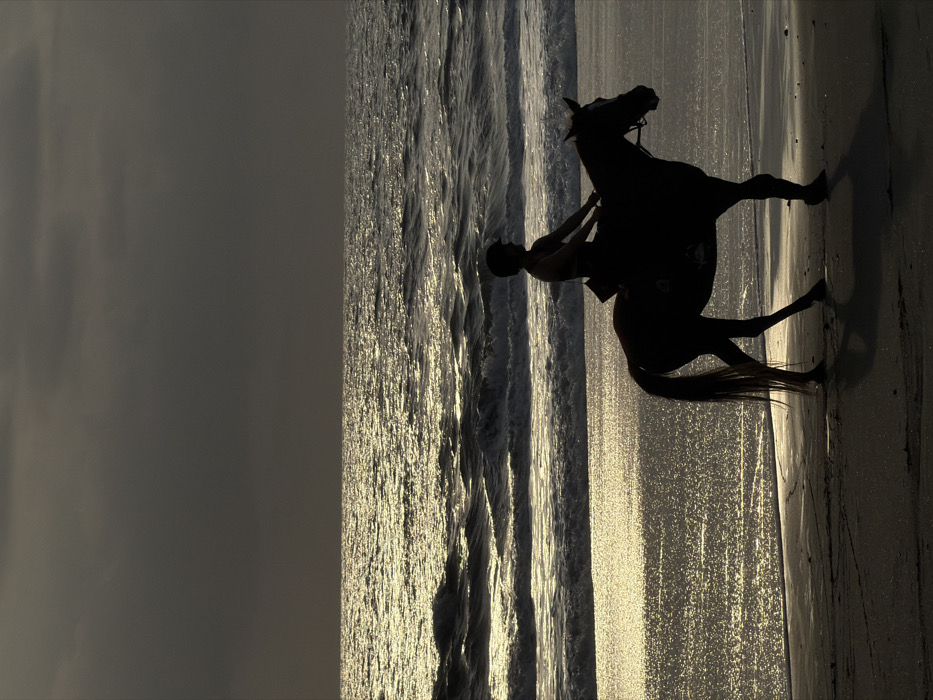 - "A single individual on horseback is observed walking along the shoreline of a beach in Belalang, Indonesia" by FM-kNLQJ2, licensed under CC BY 4.0