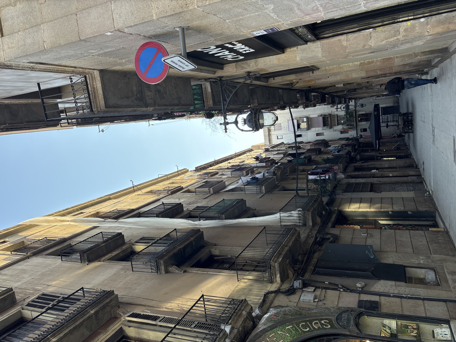 - "The image depicts a narrow, paved urban street in Barcelona, Spain, flanked by multi-story buildings under a clear blue sky" by FM-8mnz82, licensed under CC BY 4.0