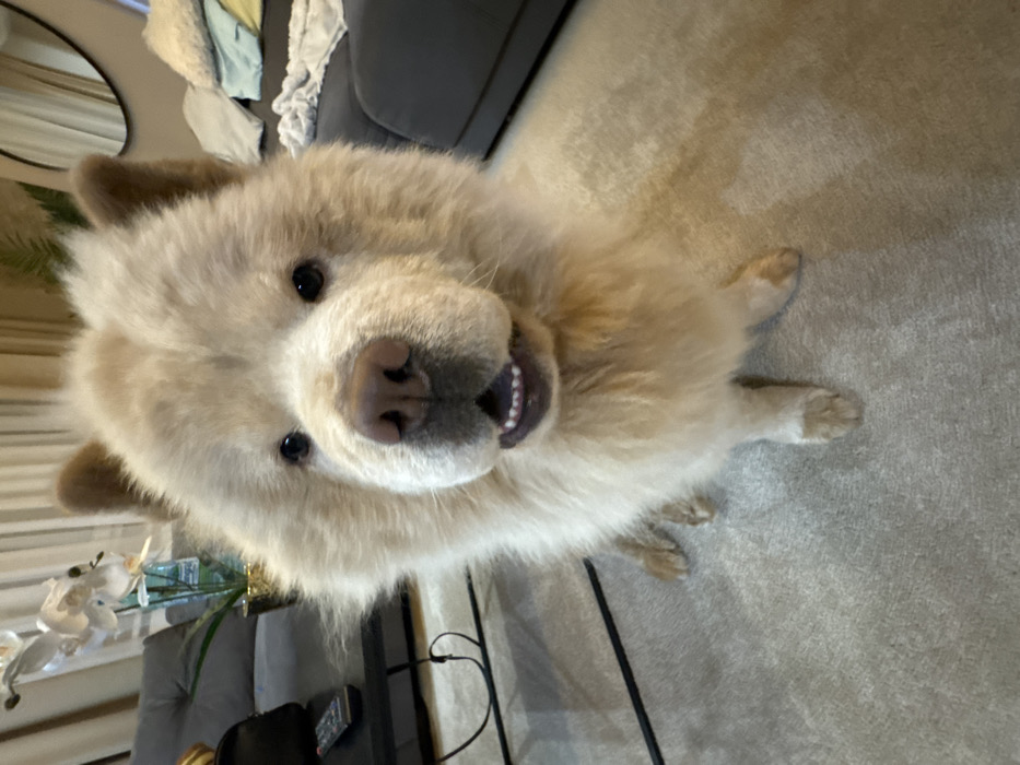 - "The image displays a cream-colored Chow Chow dog positioned centrally, looking directly at the viewer with an open mouth and visible lower teeth" by FM-iZd4G2, licensed under CC BY 4.0