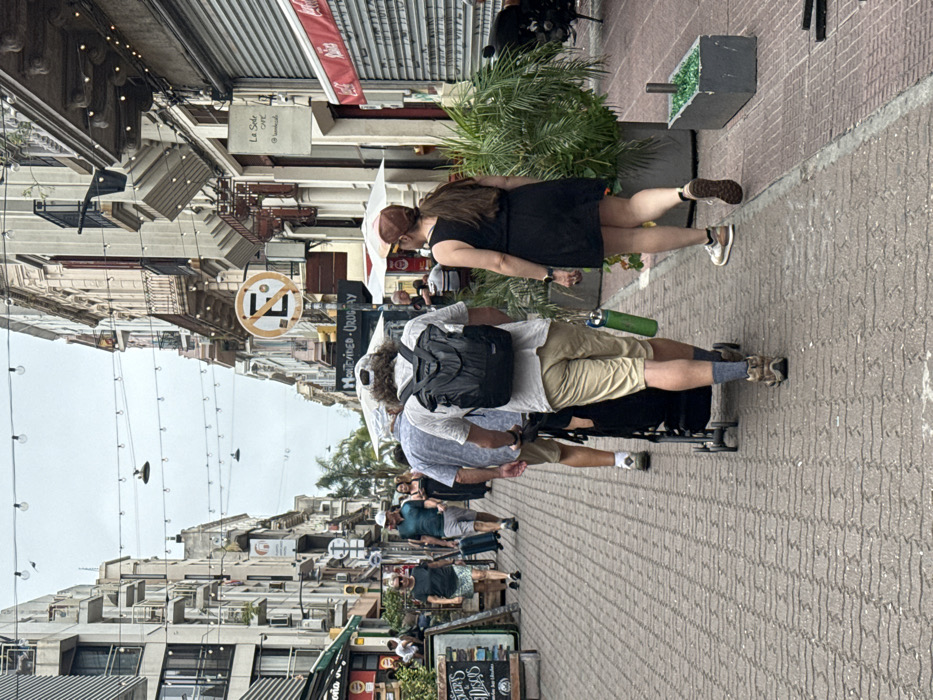 - "A brick-paved street scene featuring pedestrians walking along a sidewalk" by FM-x6Qwo1, licensed under CC BY 4.0