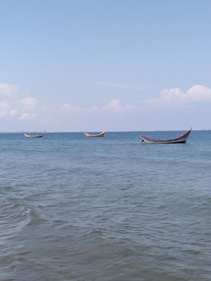 - "Three boats sit peacefully on a calm, blue sea under a bright sky dotted with fluffy white clouds" by FM-sAcf03, licensed under CC BY 4.0