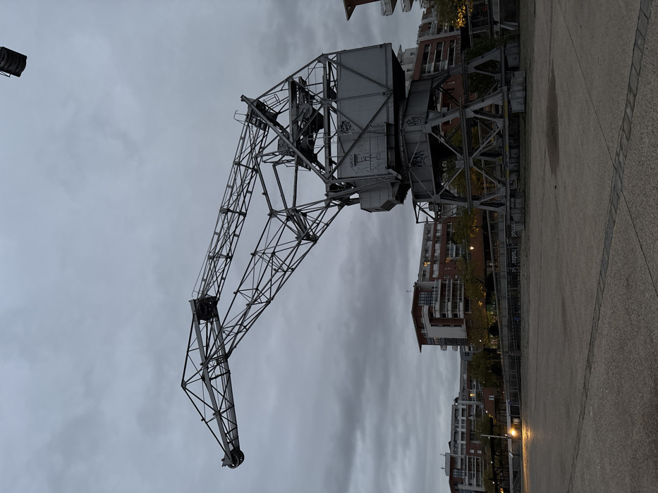 - "A wide-angle, static image captures a large, disused grey steel gantry crane, specifically the "Grue 13" (Crane 13) or "Portique de Docks," located on the paved waterfront of the Bassin d'Austerlitz / Presqu'île Malraux in the Port du Rhin district of Strasbourg, France" by FM-eJZnZ2, licensed under CC BY 4.0