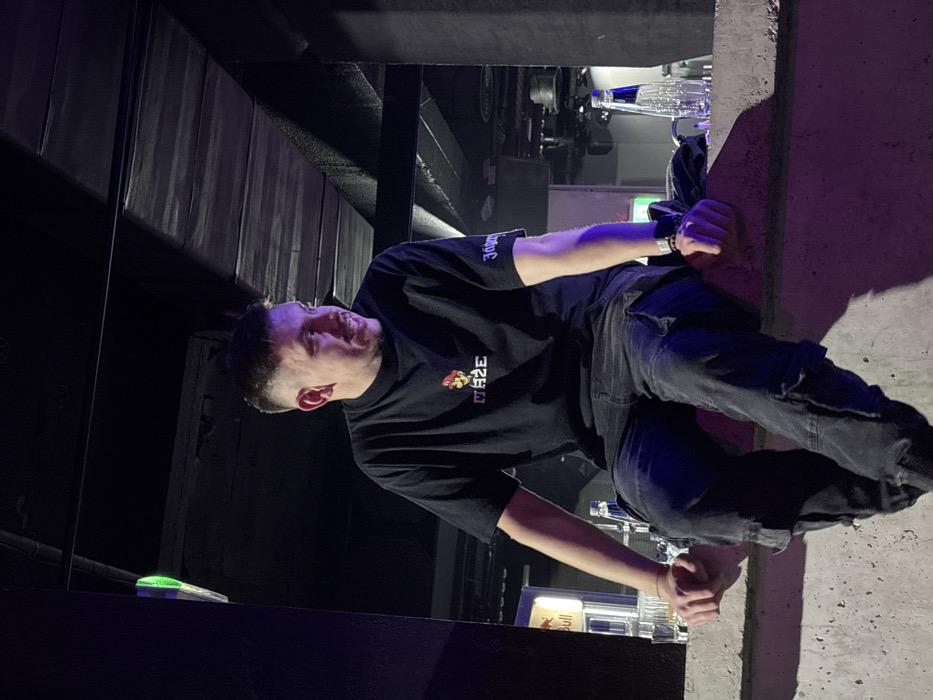 An indoor, dimly lit scene, likely within a nightclub or bar environment