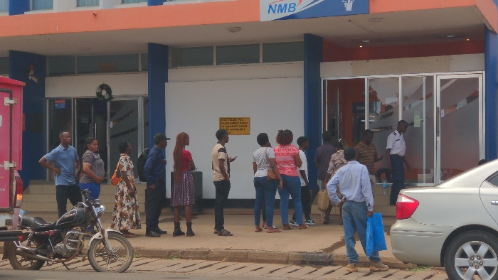 - "A queue of people waits outside the "NMB" bank" by FM-QrecA3, licensed under CC BY 4.0