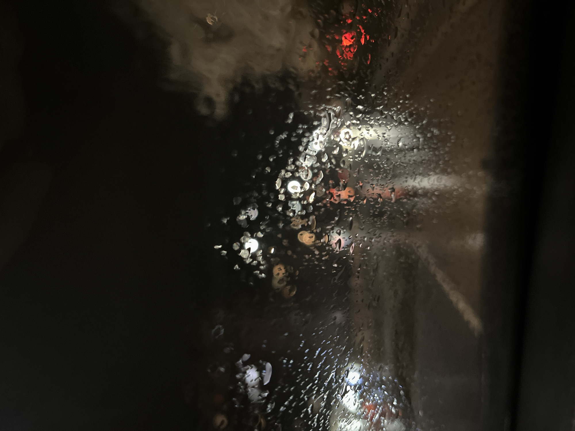 - "view through a rain-covered window at night" by FM-gMLVD3, licensed under CC BY 4.0