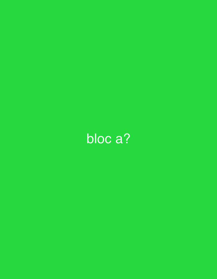 The image displays a solid, uniform green background. Centered horizontally and vertically, white alphanumeric characters spell "bloc a?" followed by a question mark. No individuals, objects, or environmental features are depicted within the image frame. The scene is situated in Grevenmacher, Luxembourg.