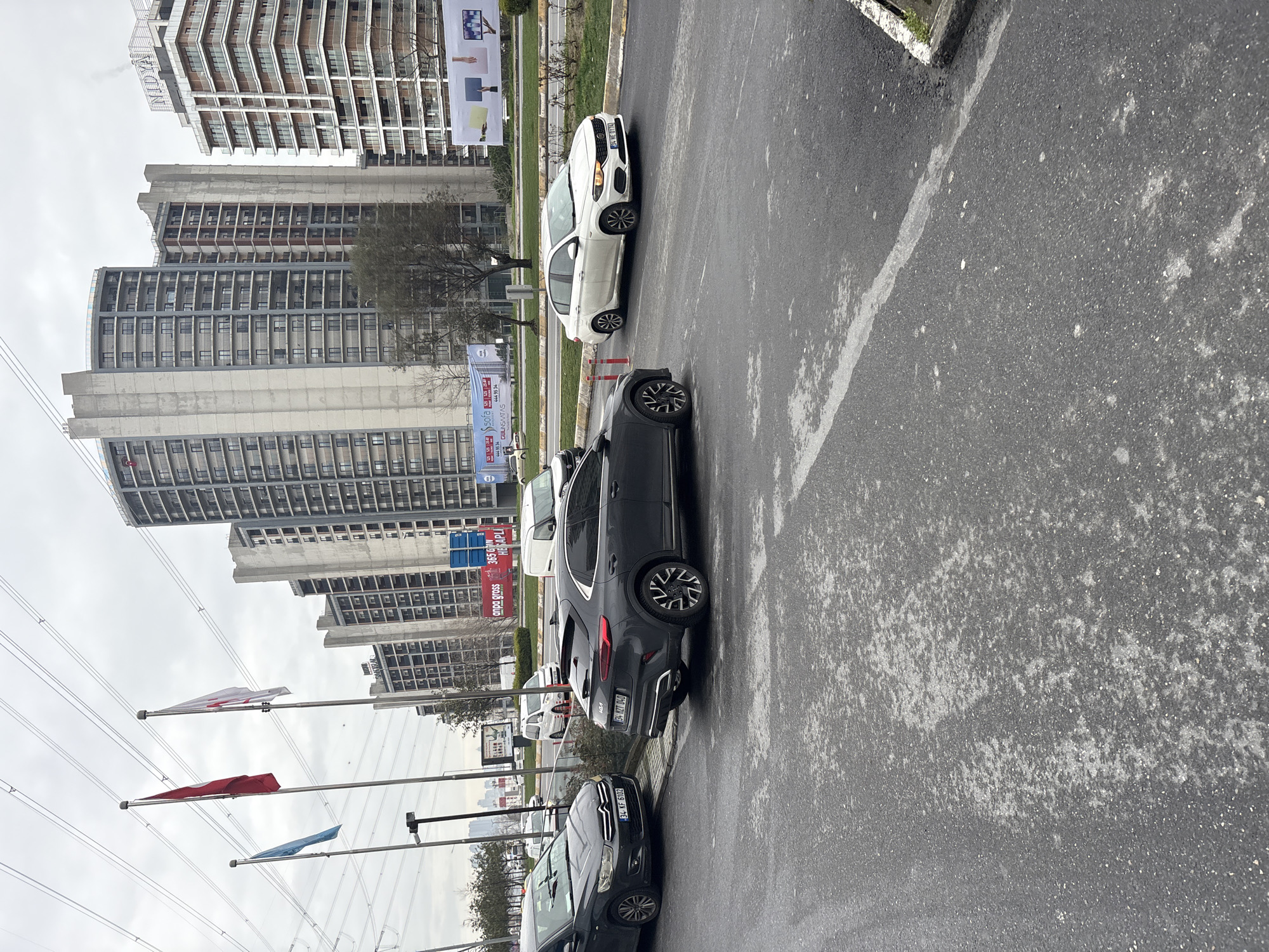 row of parked cars on a street in Esenyurt, Turkey