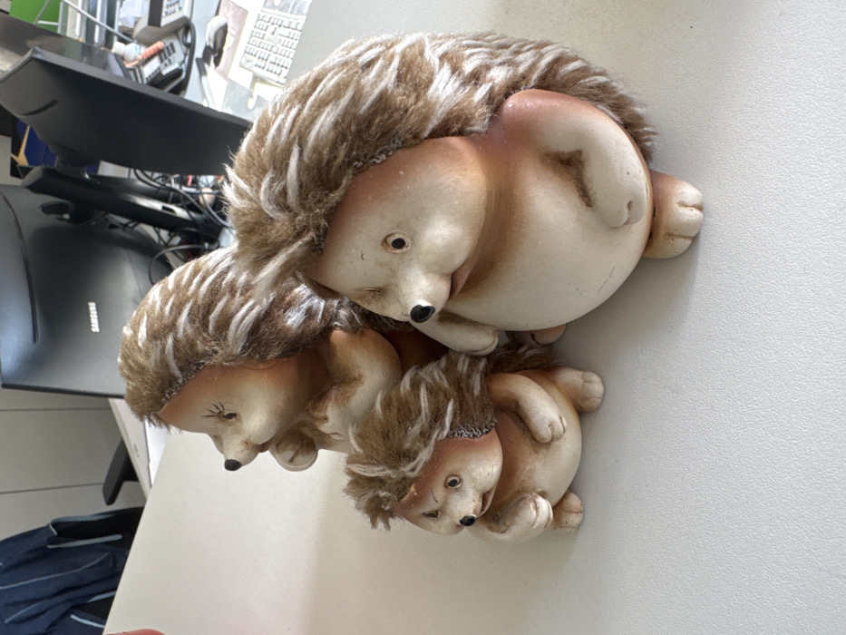 - "The scene depicts three decorative hedgehog figurines arranged on a light-colored flat surface within an indoor office environment in Rastatt, Germany" by FM-jmwMc2, licensed under CC BY 4.0