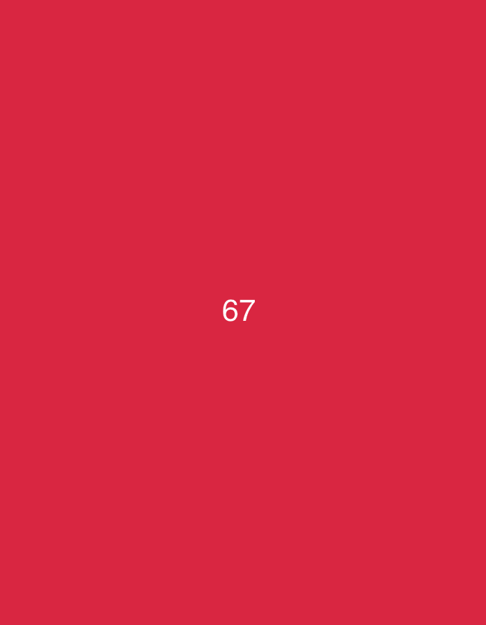 The image displays a uniform red field across its entire area. White numeric characters, specifically the digits "67", are centrally positioned within this red field. No other visual elements are present, such as specific geographical features, architectural details, individuals, objects, actions, interactions, or environmental characteristics. Therefore, a location within the city of Sofia, Bulgaria, or any other city, cannot be identified or confirmed from the visual content of this image.
