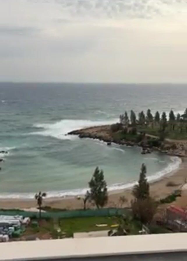 coastal view from what appears to be a high vantage point, possibly a building or cliff