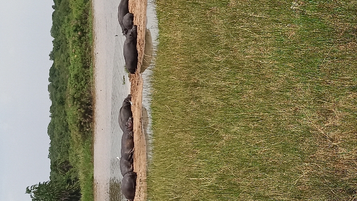 - "A group of hippopotamuses are gathered near a body of water, standing at the sandy edge" by FM-oIWu62, licensed under CC BY 4.0